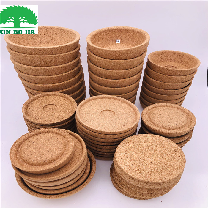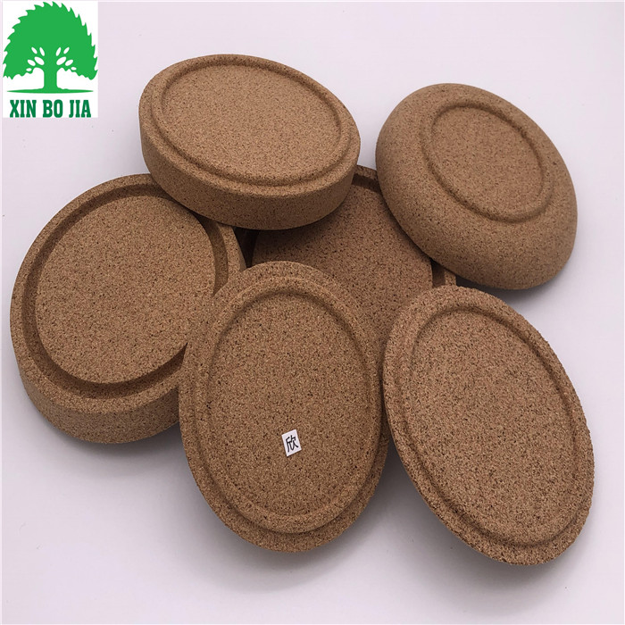 用天然软木粒加聚氨酯胶搅拌均匀,放入定型模具经过热压,高温烘焙定型、养生、脱模、修边、打磨等工序加工成型,