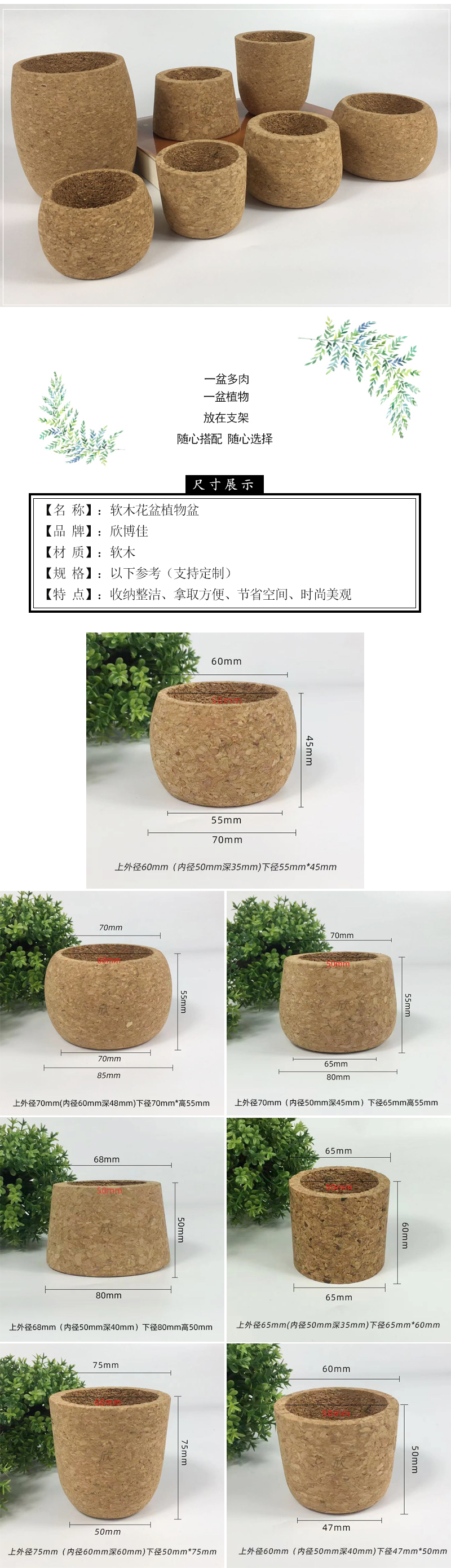 软木花盆 多肉植物吊蓝小盆栽 创意软木花瓶